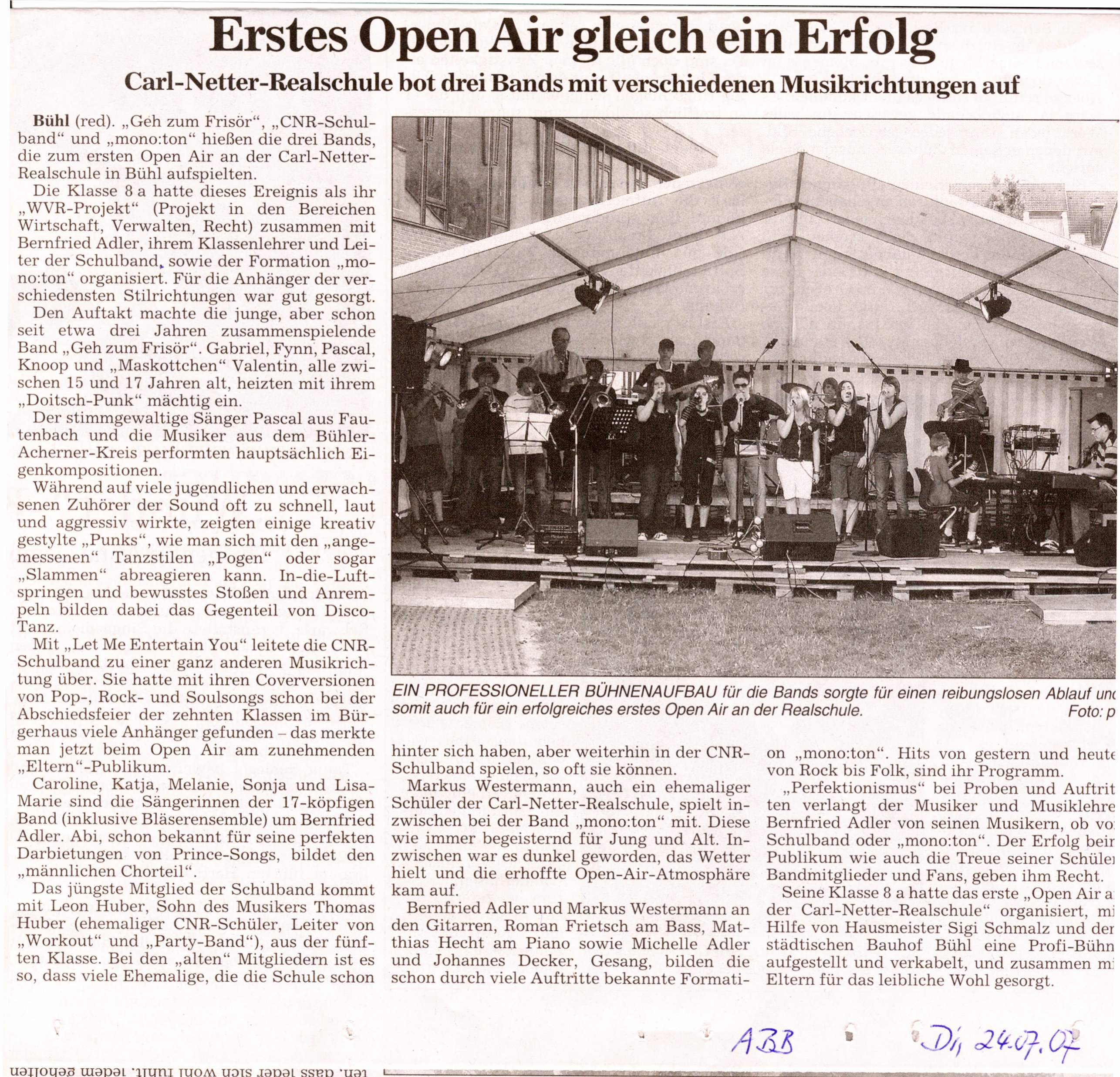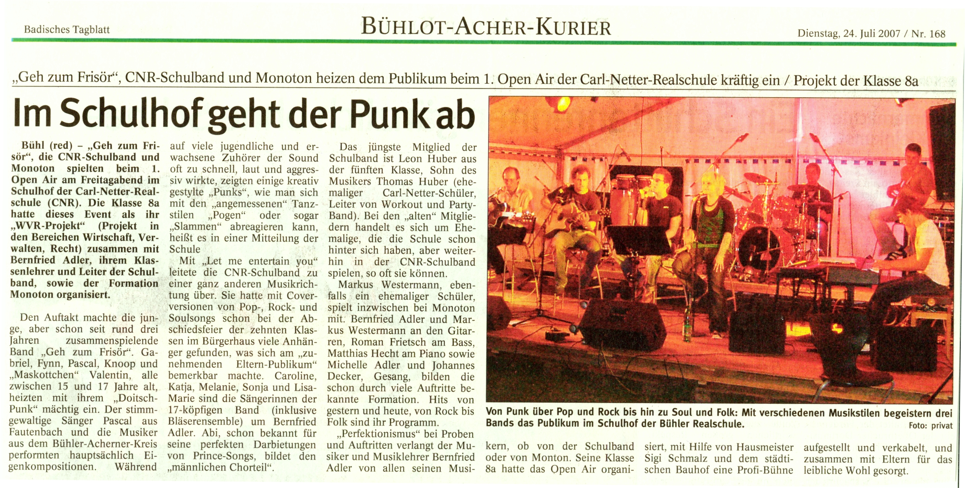 die am Freitag, 20. Juli, ab 19.00 Uhr im Schulhof der Carl - Netter- Realschule in Bühl allen jungen und jung gebliebenen Leuten heiße Musik servierten.