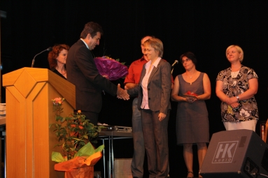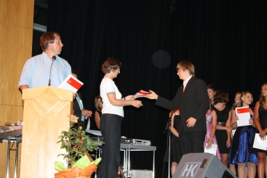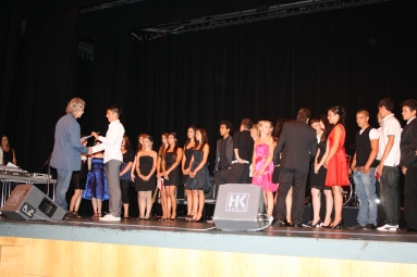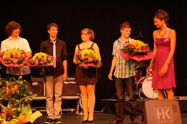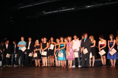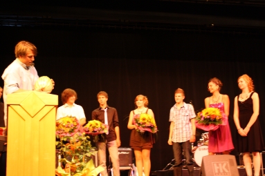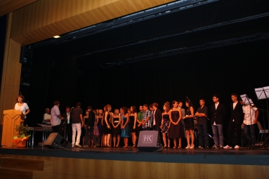 „Irgendwas bleibt” hieß das erste Lied der neuformierten CNR-Schulband unter der Leitung von Bernfried Adler. Rektor Erhard Wein bezog diesen Titel zum einen auf die Erinnerungen an die vergangenen sechs Schuljahre als auch auf die Erinnerungen an einen Rekordjahrgang 2009/2010: Fünf Klassen mit je 33 Schülern starteten ihre Realschulzeit noch in der alten Realschule am Stadtgarten, davon schlossen jetzt alle verbliebenen 152 Zehntklässler im neuen Gebäude am Platz Vilafranca ihre Prüfungen überaus erfolgreich ab: 55 erreichten einen Notendurchschnitt zwischen 1,0 und 1,9 und erhielten einen Preis, weitere 33 Schüler ein Lob (Durchschnitt von 2,0 bis 2,2). Insgesamt wurden 56,6 % des Abschlussjahrgangs ausgezeichnet, der Gesamtdurchschnitt ist mit 2,2 ebenfalls ein Rekord in der Geschichte der CNR.