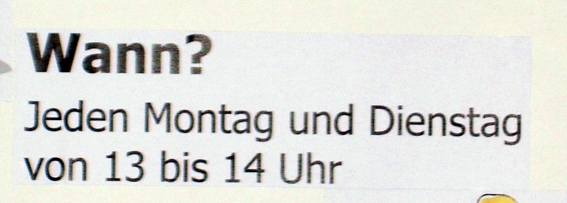 Termine: Montags bei Herr Roser Dienstags bei Herr Ernst Mittwochs bei Frau Müller