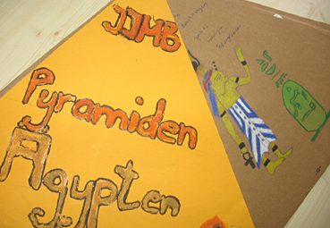 Die Doku-Gruppe hat alles dokumentiert, also aufgeschrieben, interviewt, fotografiert und gefilmt. Alle Gruppen verwendeten unterschiedliche Materialien und Medien, z.B. Computer und Schreibmaschine.