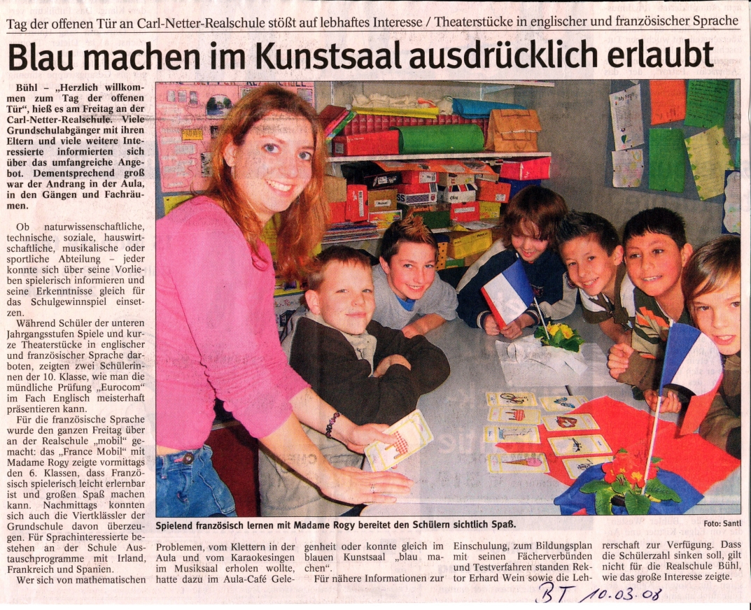 Zeitungsausschnitte vom CNRS-Tag BT 10.03.08 ABB 11.03.08 BT 9.März 09 ABB 7. März 09 aktuell:ABB 18. März 2011BT 18. März 2011