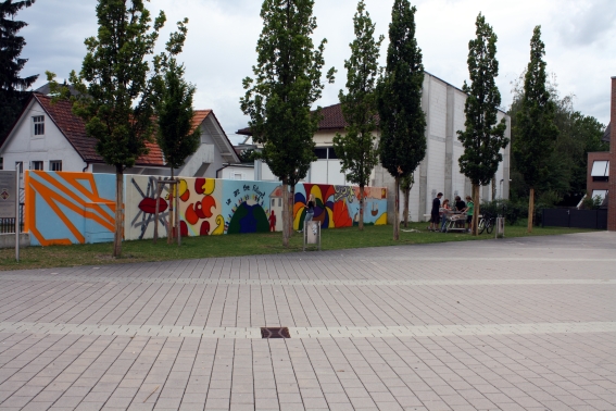 Rechtzeitig fertig zur ersten Veranstaltung des Bühler Kultursommers 2009 ist das Projekt der Klasse 8b: Zusammen mit ihrer Klassenlehrerin Petra Santl möchten die Schülerinnen und Schüler mit der Gestaltung der Mauer beim Haupteingang der Realschule, gegenüber der Mediathek, einen Beitrag zum Kultursommer 2009 und zur Stadtgestaltung von Bühl leisten.